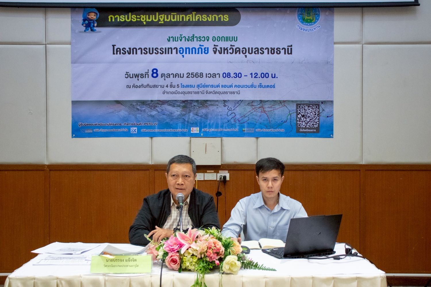 กรมชลประทานร่วมกับกิจการร่วมค้า PSTG JV ได้ดำเนินการจัดประชุมปฐมนิเทศโครงการ งานจ้างสำรวจ ออกแบบ โครงการบรรเทาอุทกภัย จังหวัดอุบลราชธานี เมื่อวันพุธที่ 8 ตุลาคม พ.ศ. 2568 เวลา 08.30 – 12.00 น. ณ ห้องทับทิมสยาม 4 ชั้น 5 โรงแรม สุนีย์แกรนด์ แอนด์ คอนเวนชั่น เซ็นเตอร์ อำเภอเมืองอุบลราชธานี จังหวัดอุบลราชธานี เพื่อนำเสนอข้อมูลและรายละเอียดต่าง ๆ ของโครงการให้กับหน่วยงานราชการ ภาคเอกชน ตลอดจนประชาชนผู้สนใจและผู้ที่เกี่ยวข้องได้รับทราบ พร้อมทั้งรับฟังความคิดเห็นและข้อเสนอแนะต่าง ๆ อันจะเป็นประโยชน์ต่อการดำเนินงาน โดยได้รับเกียรติจาก ร้อยตรีสรมงคล มงคละสิริ รองผู้ว่าราชการจังหวัดอุบลราชธานี เป็นประธานกล่าวเปิดการประชุม และนายศักดิ์ชาย เทพคำอ้าย ผู้อำนวยการส่วนวิศวกรรม สำนักออกแบบวิศวกรรมและสถาปัตยกรรม กรมชลประทาน เป็นผู้กล่าวรายงานการประชุม มีผู้เข้าร่วมประชุม ณ สถานที่จัดประชุมทั้งสิ้น 138 คน เข้าร่วมประชุมผ่านช่องทางออนไลน์อิเล็กทรอนิกส์ Zoom meeting 2 คน (ไม่นับรวมเจ้าของโครงการและกิจการร่วมค้า) นอกจากนี้ ยังได้มีการถ่ายทอดสดการประชุม (Live) ผ่านช่องทาง Facebook fanpage Ubon Connect อุบลคอนเนก ซึ่งมีผู้เข้าร่วมรับชมการถ่ายทอดสดดังกล่าวกว่า 50 คน