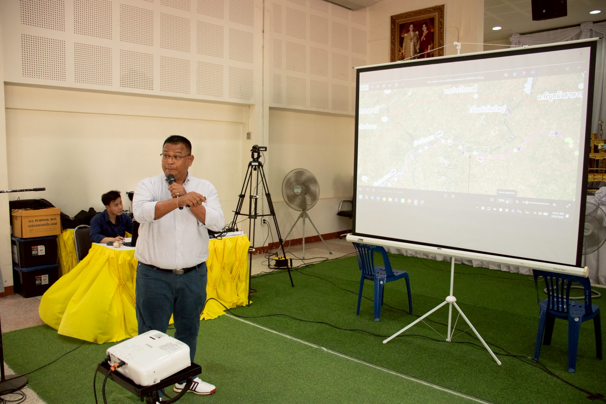 และมีนางสาวภิตินันท์ ดอกไม้ หัวหน้าฝ่ายวางโครงการที่ 2 ผู้แทนกรมชลประทาน เป็นผู้กล่าวรายงาน มีผู้เข้าร่วมประชุม 70 คน